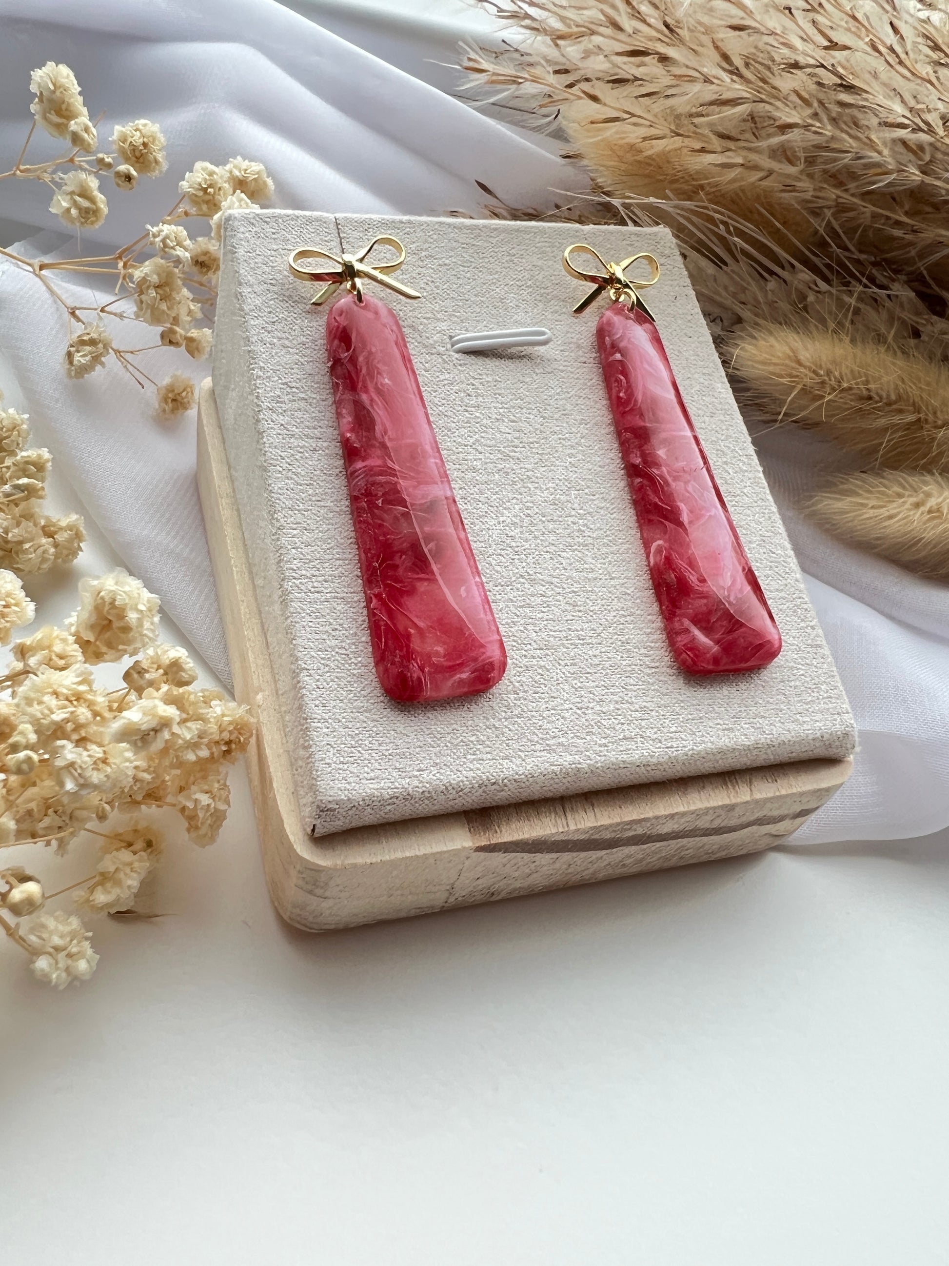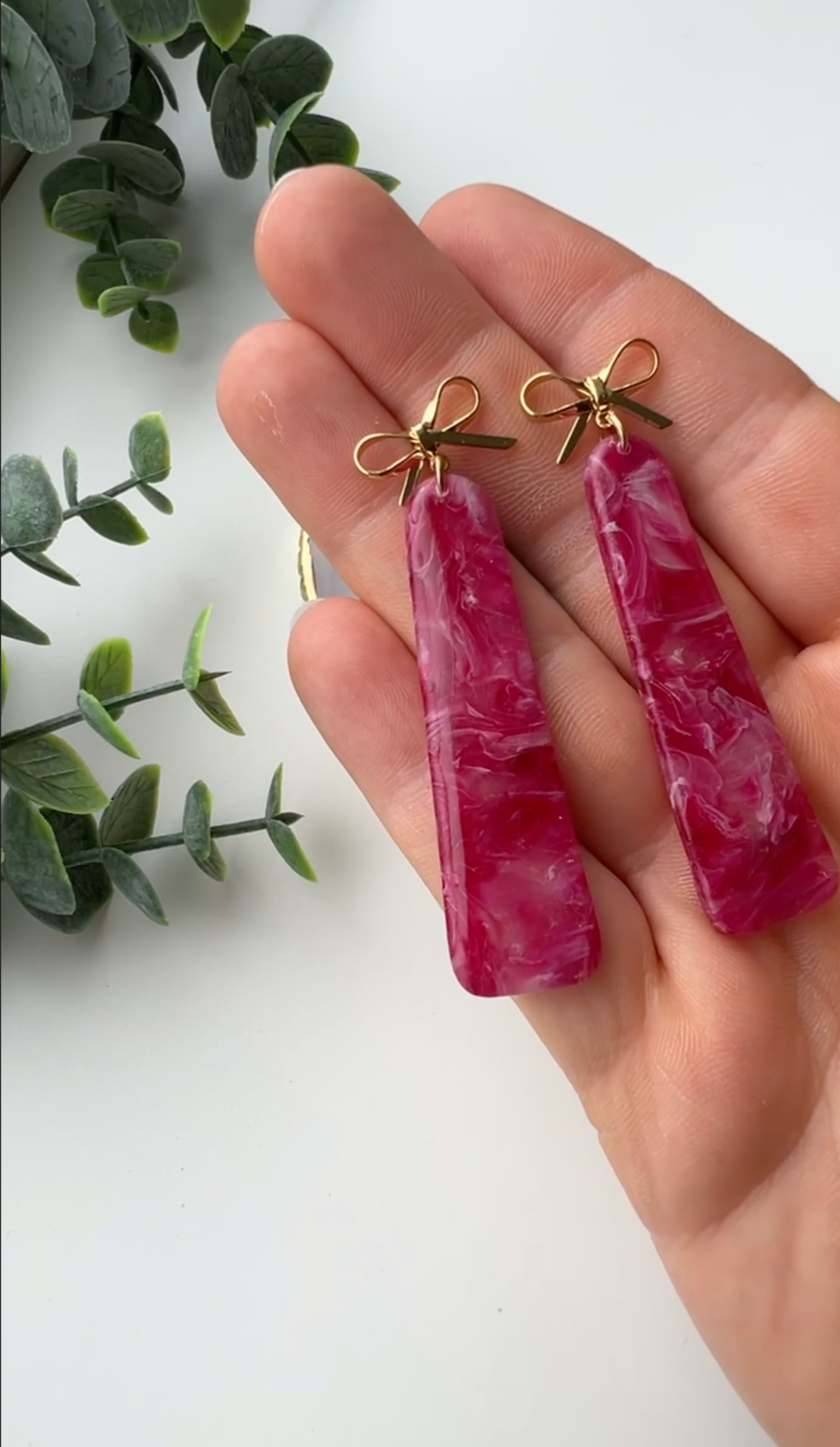 De Inez oorbellen zijn met de hand gemaakt van hoogwaardige polymer klei met een verfijnd warm marmer effect. De geometrische vorm en goudkleurige Strikjes creëren een moderne, tijdloze uitstraling die moeiteloos past bij elke outfit.