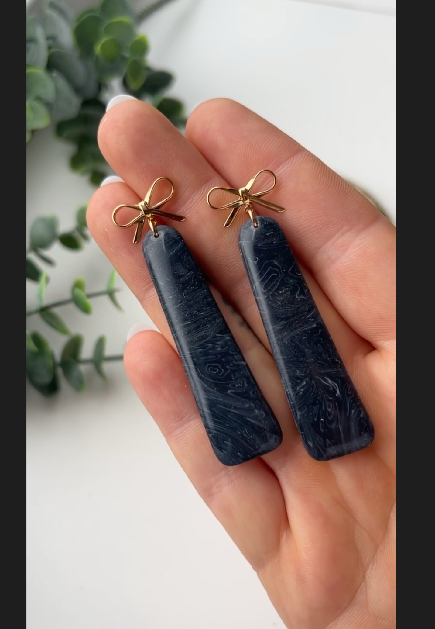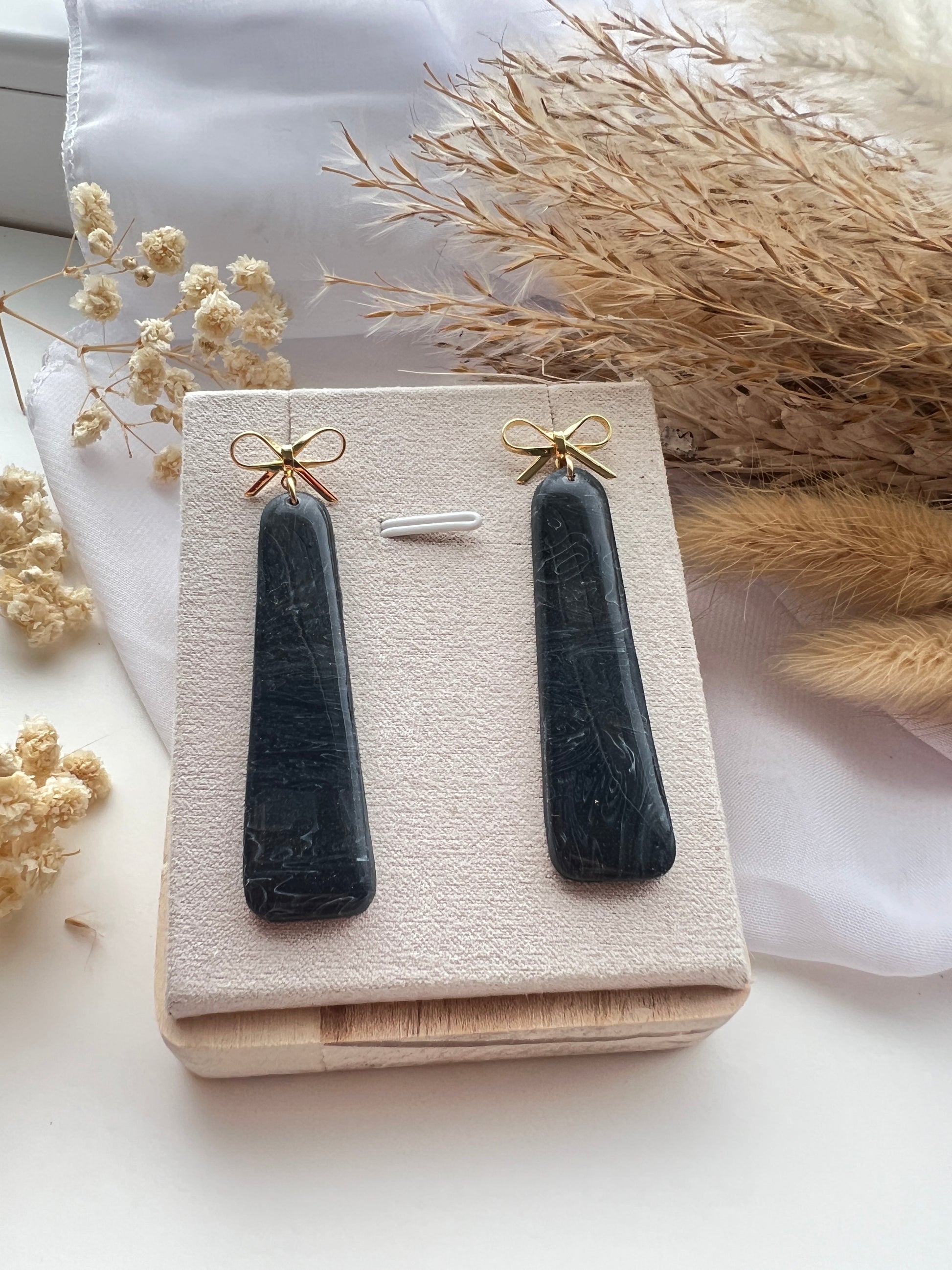 De Inez oorbellen zijn met de hand gemaakt van hoogwaardige polymer klei met een verfijnd zwart marmer effect. De geometrische vorm en goudkleurige Strikjes creëren een moderne, tijdloze uitstraling die moeiteloos past bij elke outfit.