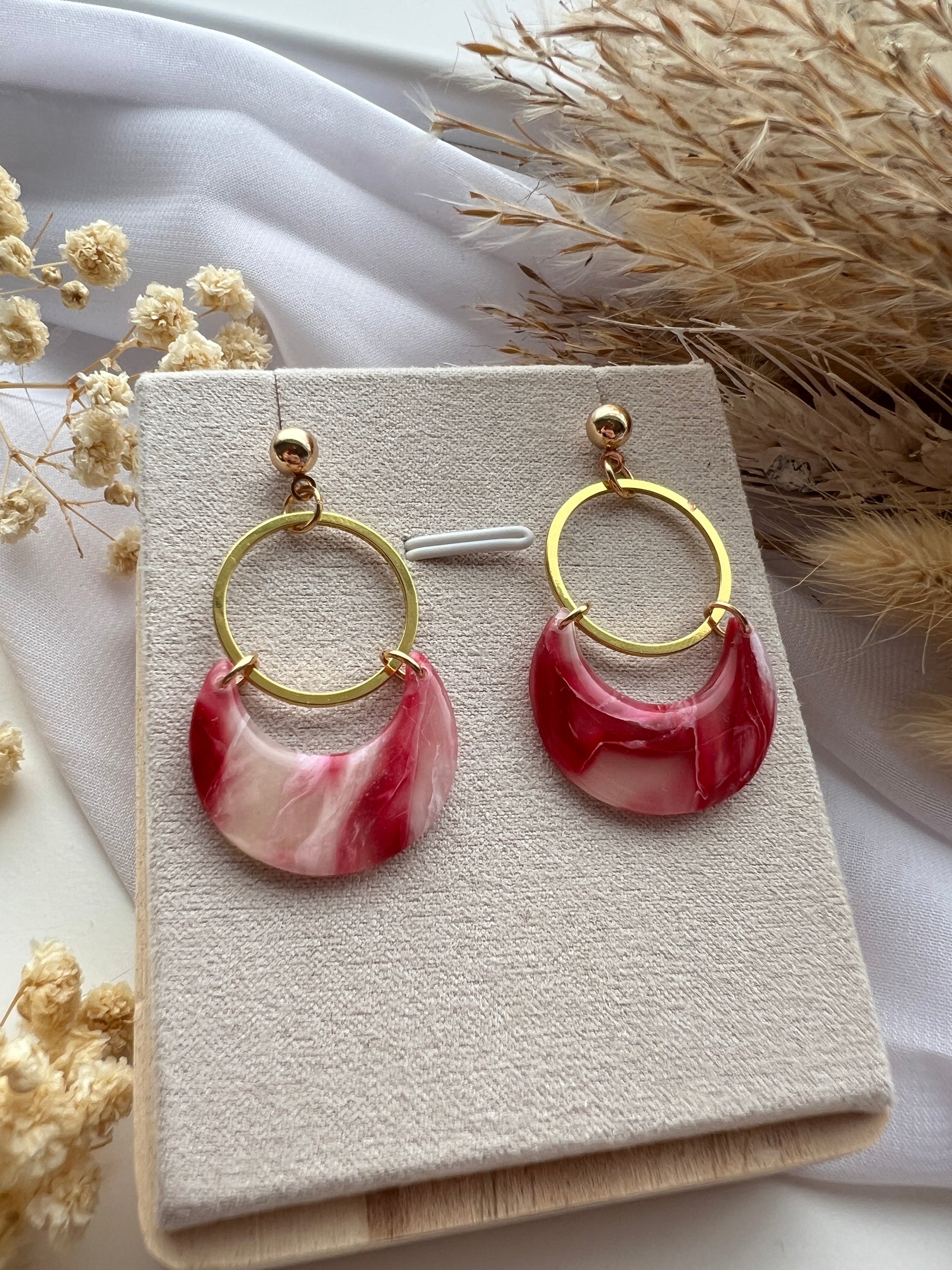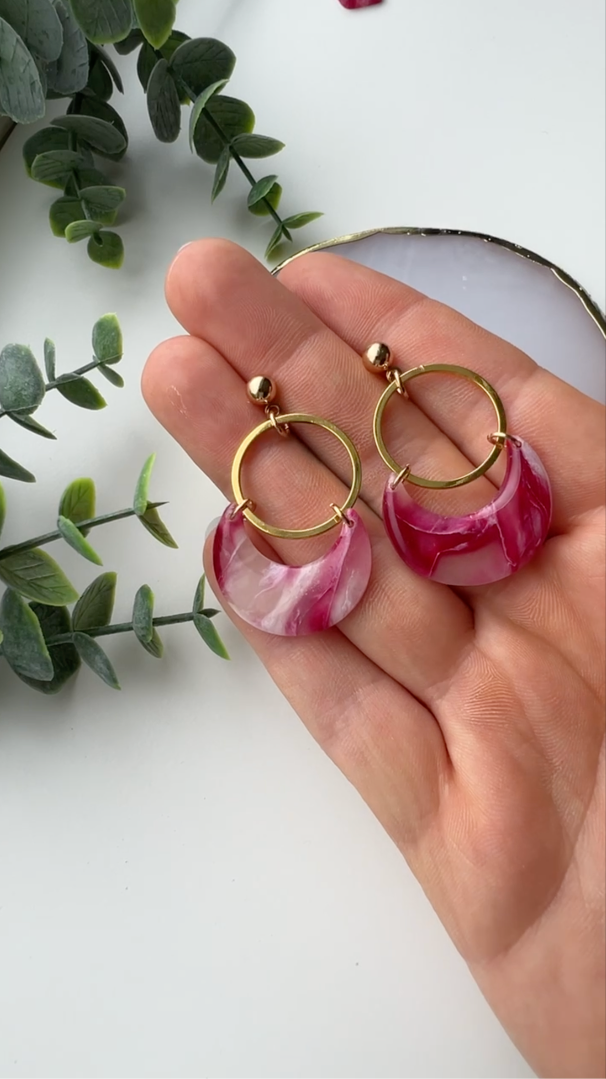De Maia oorbellen zijn met de hand gemaakt van hoogwaardige polymer klei met een verfijnd warm marmer effect. De geometrische vorm en goudkleurige Strikjes creëren een moderne, tijdloze uitstraling die moeiteloos past bij elke outfit.