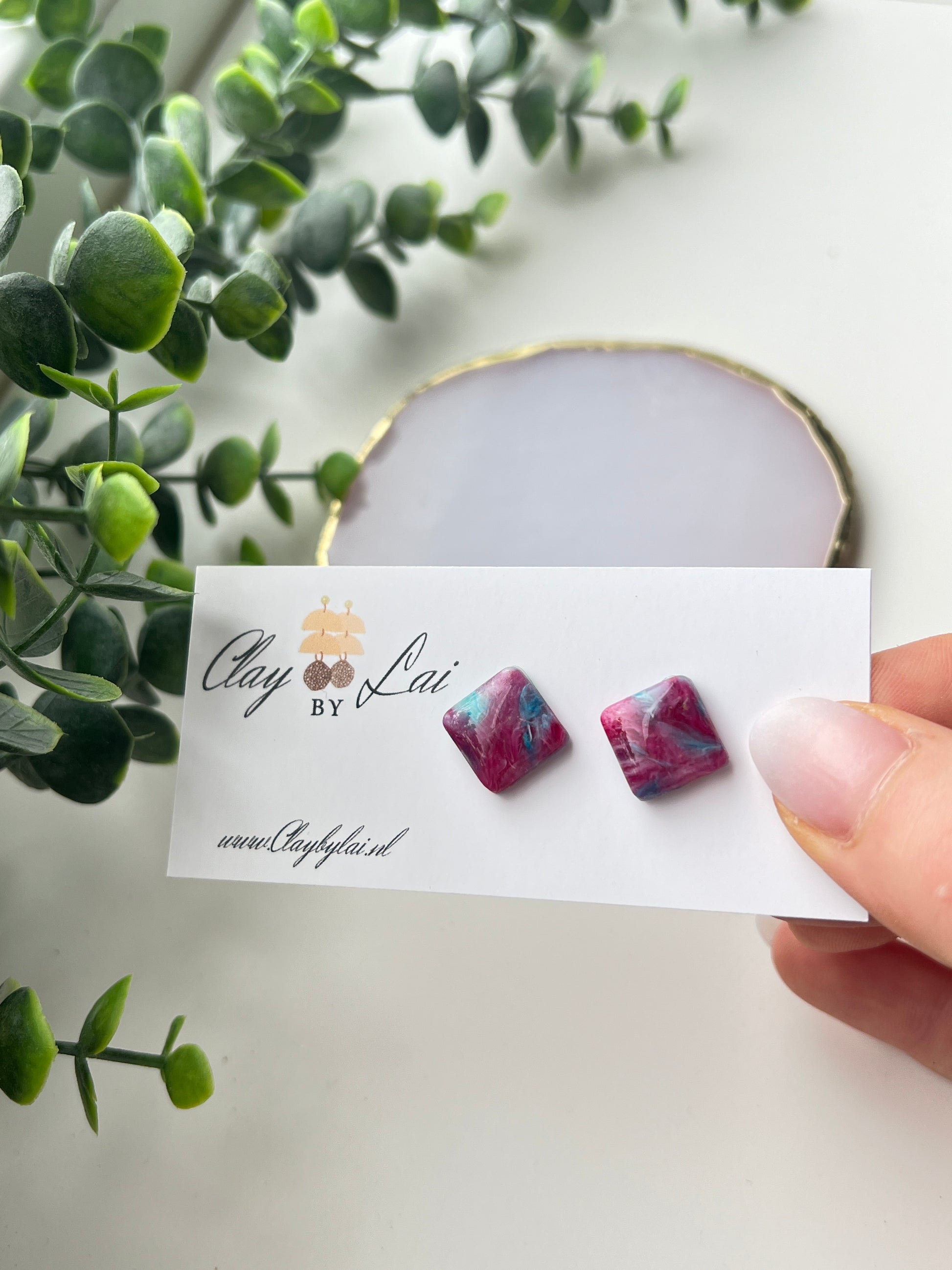 De Marble Stud – multicolor zijn liefdevol handgemaakt uit polymeerklei en hebben een prachtig marmer-effect in verschillende tinten blauw en wit.