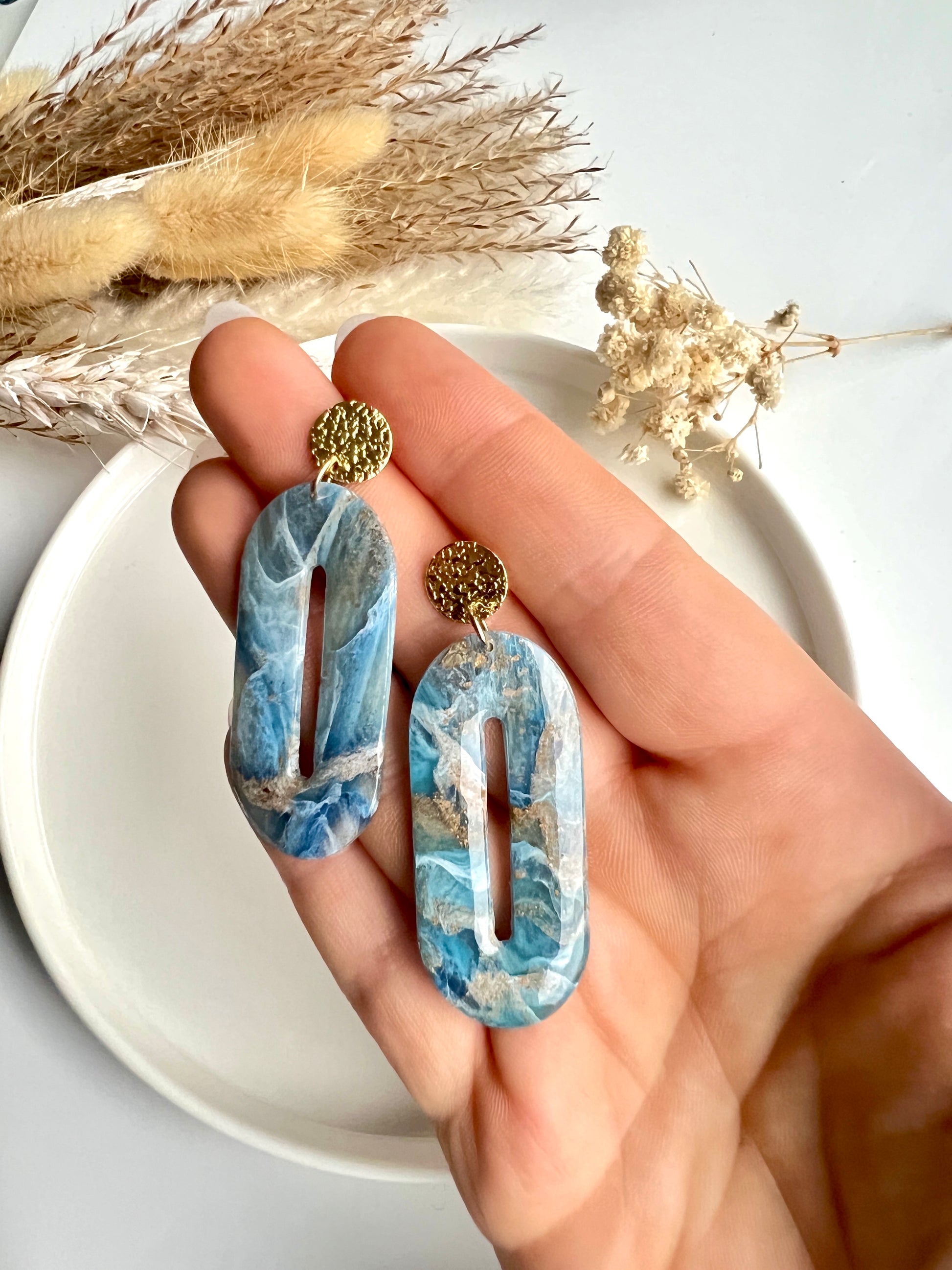 Elke oorbel is voorzien van chirurgisch roestvrijstalen haakjes, knopjes of ringen, verkrijgbaar in goud of zilver. Daardoor zijn ze veilig voor gevoelige oren en nikkelvrij. De oorbellen zijn met de hand gemaakt van duurzaam polymeer klei en hebben een lichtgewicht ontwerp met fijne details en patronen die opvallen zonder zwaar aan te voelen.