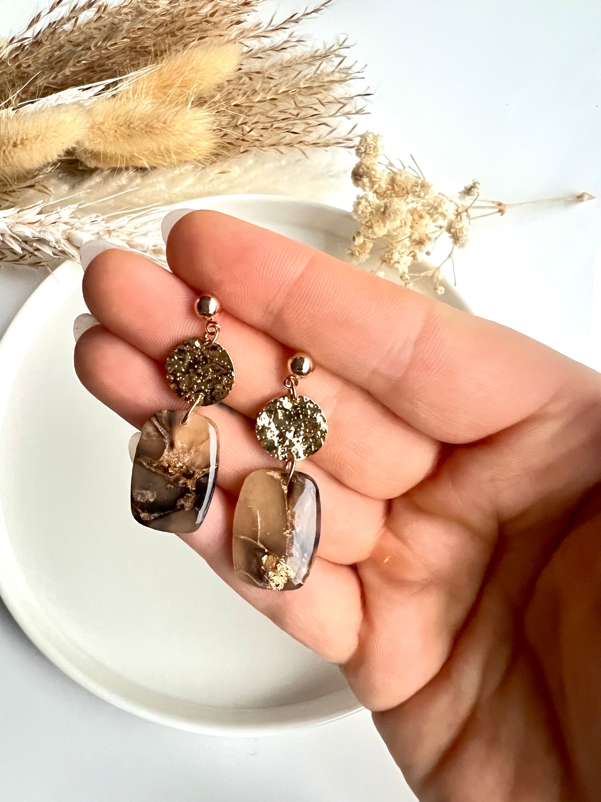 Elke oorbel is voorzien van chirurgisch roestvrijstalen haakjes, knopjes of ringen, verkrijgbaar in goud of zilver. Daardoor zijn ze veilig voor gevoelige oren en nikkelvrij. De oorbellen zijn met de hand gemaakt van duurzaam polymeer klei en hebben een lichtgewicht ontwerp met fijne details en patronen die opvallen zonder zwaar aan te voelen.