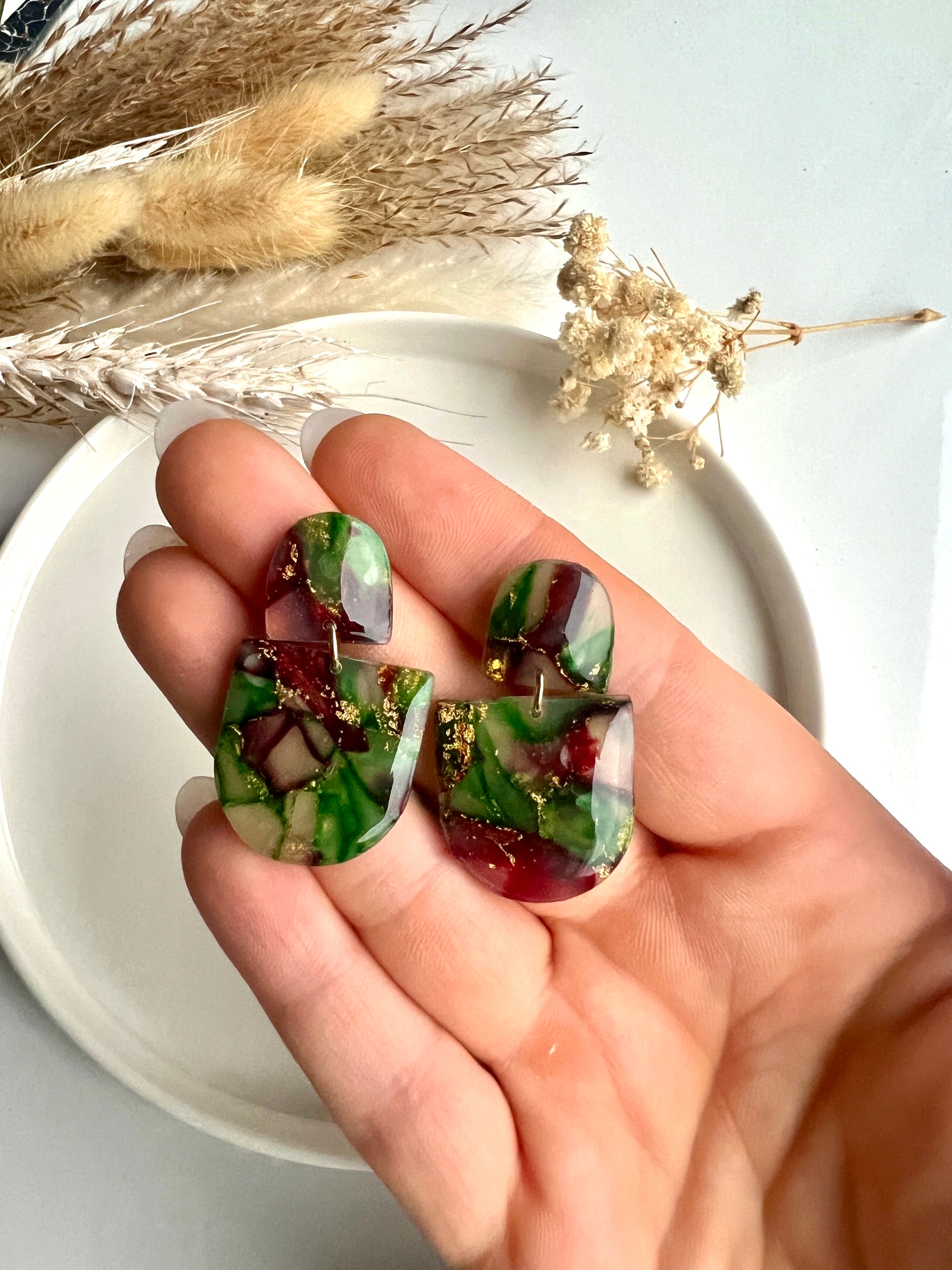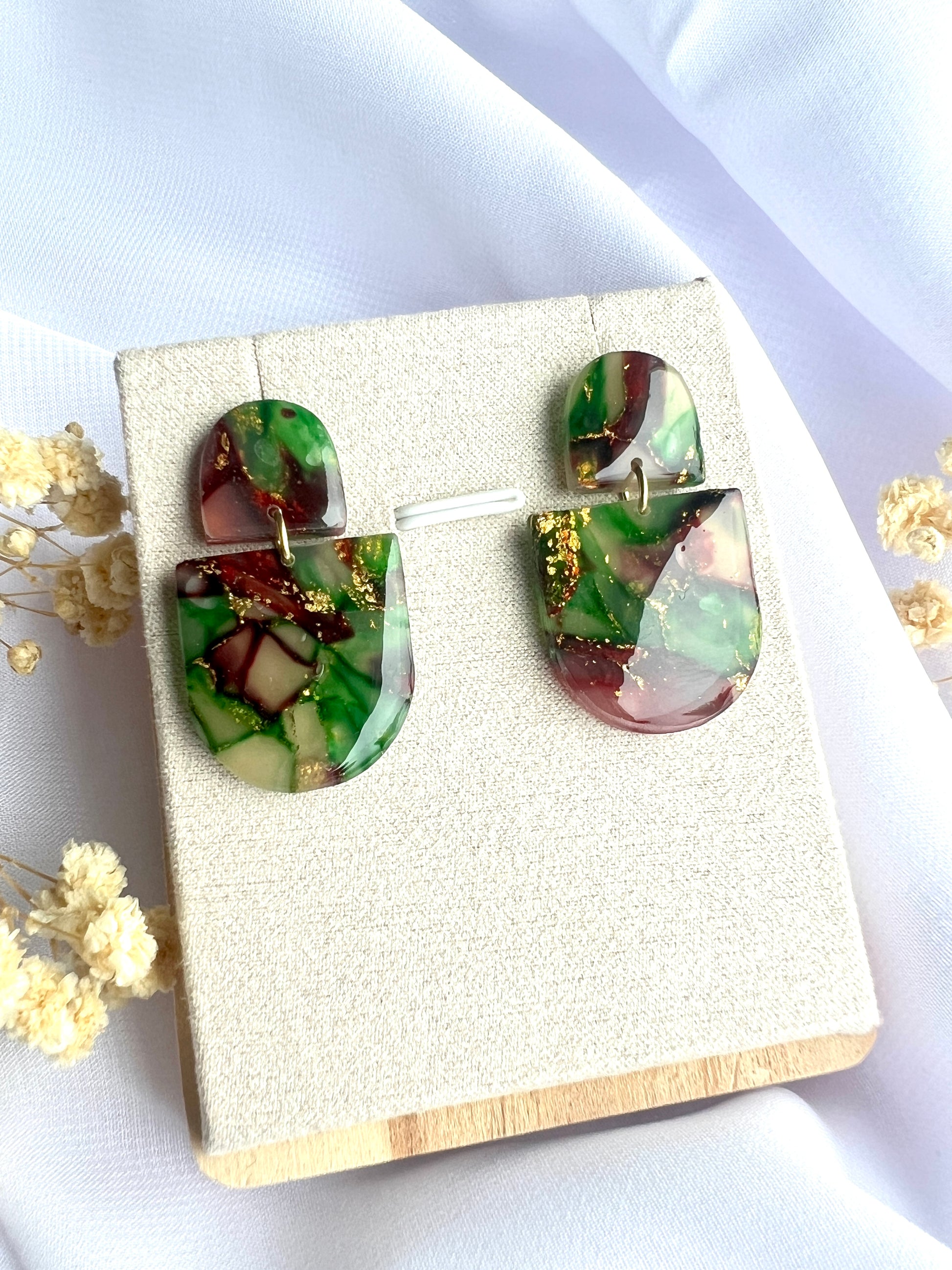 Elke oorbel is voorzien van chirurgisch roestvrijstalen haakjes, knopjes of ringen, verkrijgbaar in goud of zilver. Daardoor zijn ze veilig voor gevoelige oren en nikkelvrij. De oorbellen zijn met de hand gemaakt van duurzaam polymeer klei en hebben een lichtgewicht ontwerp met fijne details en patronen die opvallen zonder zwaar aan te voelen.